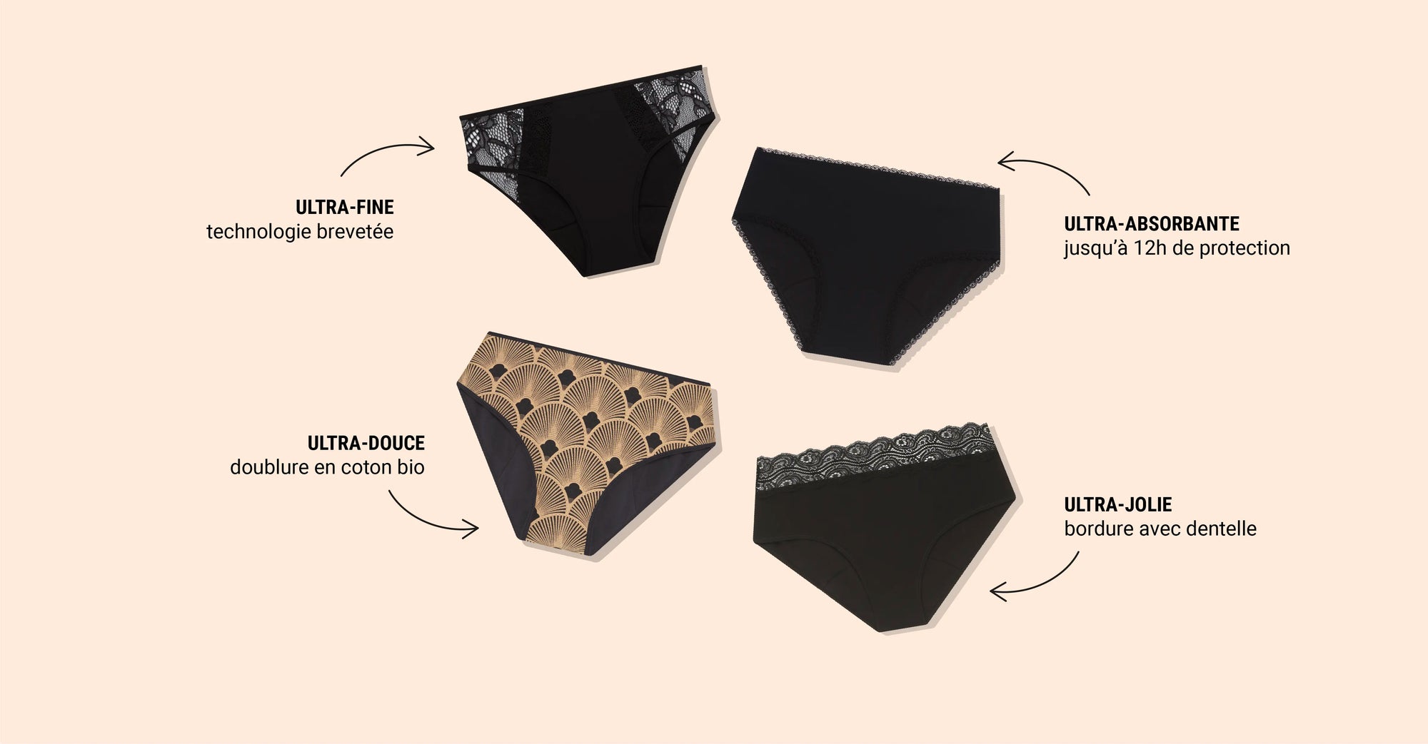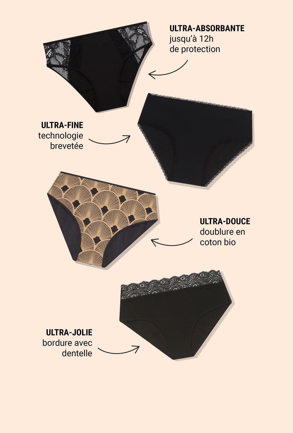 UN LARGE CHOIX DE MODÈLES DE CULOTTES MENSTRUELLES